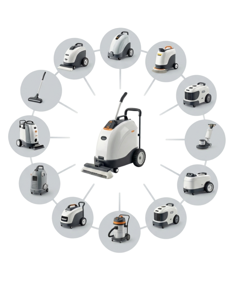 Fully Equipped with the latest best in industry machineries and the tools such as scrubber machine, Auto Scrubber, Normal Buffer Machine, High Speed Buffer Machine, Carpet Extraction Machine, High Pressure Jet Power Washer, Dry Vacuum, Wet And Dry Vacuum, High Dusting Vacuum, Snail Blower, Industrial Sweeper, Ladder, Housekeepers Trolley, Janitor Trolley, Signage, Walkie Talkie, Backpack Vacuum Cleaner, Sky Lift, Gondola Workstation, Hedge Trimmer, Grass Cutting, Tree shredder, Earth Augers etc.